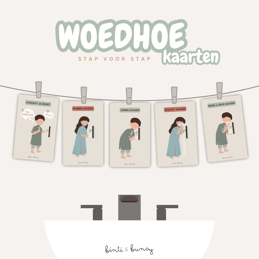 Onderwijs jouw kind(eren) de rituele wassing met behulp van deze handige woedhoe kaarten.